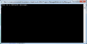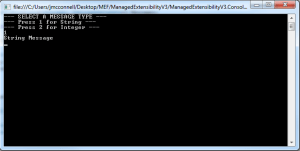 Now you may be asking the question “How is this different than any other IoC container?” And that’s a valid question. All we’ve done so far is nothing more than, say, Ninject can do. The beauty comes with the way composition works. In our usage, we are telling our DirectoryCatalog to scan our current directory, which means if we wanted to, we could drop in an assembly (or in a real-world example, read an assembly in from disk or database when a user makes a certain action), and when composition happens, it will pick it up.